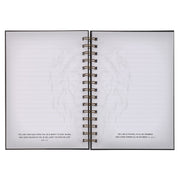 Tómate un tiempo para analizar tu día cuando escribas tus pensamientos. La cubierta dura duradera protege las páginas del diario y evita que se doblen o dañen. También proporciona una superficie resistente para tomar notas. Un alambre tono dorado une las cubiertas. Se incluyen 192 páginas rayadas para escribir o tomar notas, cada una con un versículo bíblico que se puede usar como un estímulo para escribir en el diario. Diseño negro y gris con cara de león Tapa dura Encuadernación con alambre Portada a todo color 192 páginas rayadas con versículos bíblicos Tamaño: 8.4" x 6.4" x 1" (213 x 163 x 25mm)