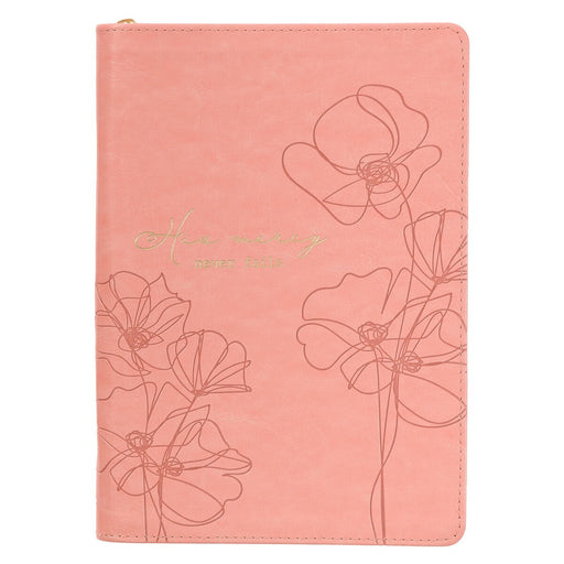 Abraza la misericordia de Dios cada día con cada palabra escrita. Diseño de flores silvestres grabadas en piel sintética rosa Mensaje dorado: H...