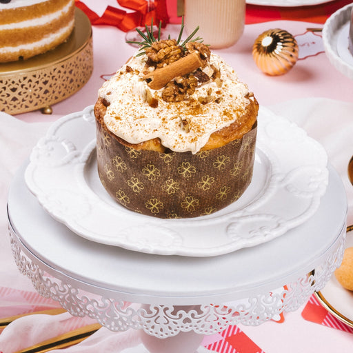 ¡Disfruta tu navidad con el panettone! Pan dulce tipo brioche, relleno de fruta confitada y chispas de chocolate cubierto con Almendras y lluvia d...