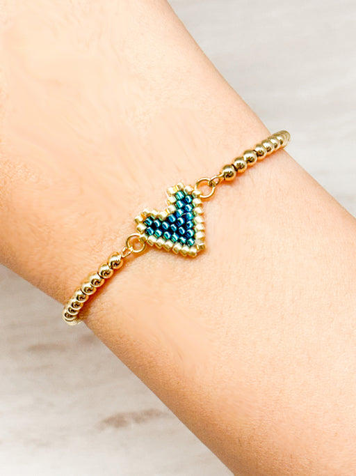 Pulsera de corazón azul bordadas en miyuki: Técnica japonesa con cuentas de vidrio.