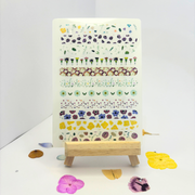 Un set de 4 láminas de stickers con ilustraciones florales, frases inspiradoras y un acabado tornasolado que brilla con la luz. ¡Además, son resistentes al agua!