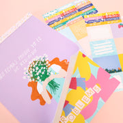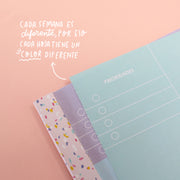 - 52 hojas con 4 diseños de colores (2 rainbow, 1 menta, 1 lila)