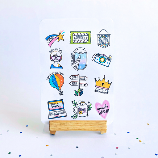 Set de 6 láminas de stickers inspirados en Proverbios, flores y frases que te invitan a disfrutar la vida con color y alegría. Dale un toque especi...
