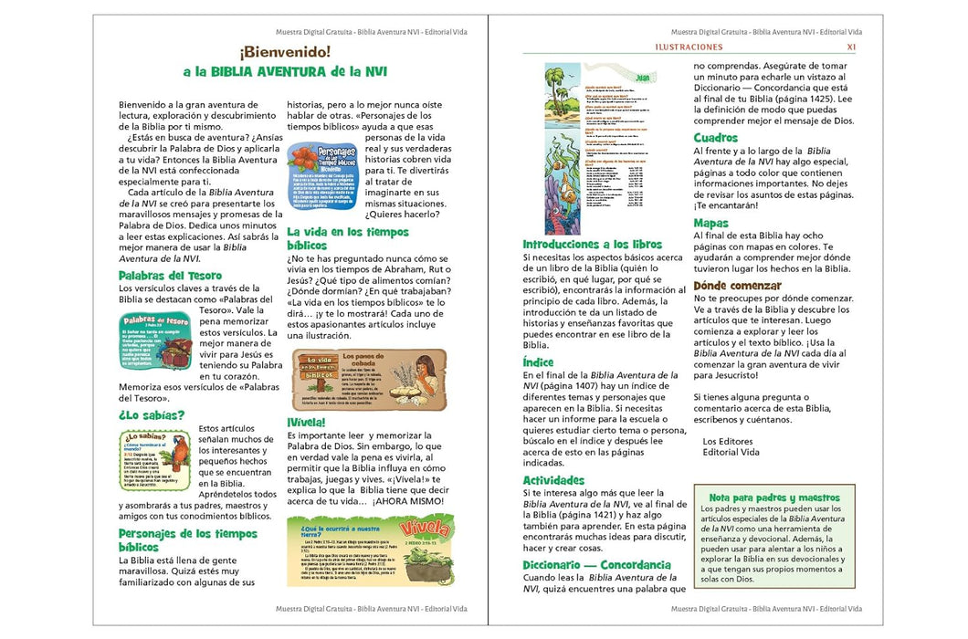 ¡La Biblia número uno para niños! Llena de grandes aventuras y artículos emocionantes, la Biblia Aventura NVI proporciona a los niños un encuentro nuevo y refrescante con las Escrituras, especialmente en el momento en que tratan de desarrollar sus propias ideas y opiniones independientes de sus padres. Con artículos ideados para motivar la curiosidad, tales como: