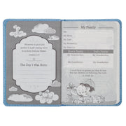 Diseñada especialmente para que tu pequeño la atesore más adelante en la vida, la Biblia de Bolsillo en Cuero Sintético Azul del Nuevo Testamento NLT para Niños es una maravillosa manera de introducir a tu hijo a las historias y enseñanzas atemporales de la Biblia. Diseños de triángulos en relieve térmico están dispersos por las cubiertas de la Biblia y un marco de soporte en relieve térmico sostiene el sentimiento en la portada. Santa Biblia Presentando el Nuevo Testamento y los Salmos, esta Biblia está impresa en la accesible Traducción Viviente Nueva, perfecta para jóvenes lectores. Está elaborada con una encuadernación que se mantiene abierta y un diseño de texto claro de dos columnas. Se incluye un marcador de cinta satinada azul para marcar fácilmente tu lugar. La Biblia de Bolsillo en Cuero Sintético Azul del Nuevo Testamento NLT para Niños viene con espacio para personalización y recuerdos familiares. Incluye una página especial al principio para un mensaje personalizado, además de páginas adicionales para registrar momentos importantes como el nacimiento del bebé, el bautismo o la confirmación, junto con un árbol genealógico. Para apoyar y elevar a los padres, también se incluye una oración única. La Biblia viene empaquetada en una caja de regalo de dos piezas, facilitando el envoltorio de regalos. Regala la Biblia de Bolsillo en Cuero Sintético Azul del Nuevo Testamento NLT para Niños como regalo de primera Navidad para un hijo, nieto o sobrino. Será un tesoro para que lo recuerde con cariño a medida que crezca. Diseño de cubierta de triángulos en relieve térmico Cubierta de cuero sintético azul Título en relieve térmico Página de presentación Páginas para información de nacimiento, bautismo o confirmación y árbol genealógico Oración especial para mamá y papá Traducción Viviente Nueva Nuevo Testamento y Salmos Encuadernación flexible Marcador de cinta azul Encuadernación que se mantiene abierta 472 páginas Texto de 7.54 puntos Tamaño: 6.3" x 4.2" x .6" (160 x 107 x 15mm)