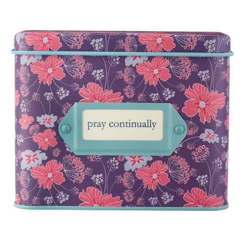 Las tarjetas de aspecto animado "Ore continuamente" son parte de la colección de Tarjetas de Oración en Latas. Esta hermosa lata les da la bienvenida a las mujeres a las cincuenta tarjetas de oración de doble cara en el interior, que ofrecen una gran cantidad de oraciones de santos del pasado.