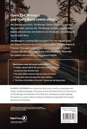¡Abre The Message y la Palabra de Dios cobra vida! Disfruta de esta traducción moderna y fácil de entender, edición delgada y portátil en atractivas cubiertas nuevas. Con poco más de una pulgada de grosor, The Message se desliza fácilmente en tu bolso, tu escritorio y tu vida; es una Biblia de lectura de alta calidad sin ser voluminosa. La traducción The Message despierta a los lectores de la Biblia desde hace mucho tiempo y les da la bienvenida a los nuevos creyentes a la pasión y la personalidad que llenan la Palabra de Dios.