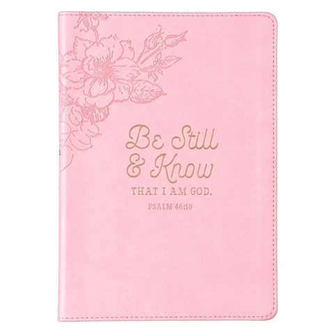 El diario Be Still & Know con su color rosa, delicadas flores grabadas al calor y un mensaje bíblico reconfortante, sirve como una herramienta útil y encantadora para cualquier mujer de fe que disfruta anotando sus ideas y oraciones en papel.