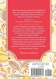 ¡El Dios todopoderoso al que servimos se interesa en lo que tienes que decir!... Este libro de oraciones devocionales es un hermoso recordatorio para presentar cualquier petición delante de tu Padre celestial. Docenas de oraciones, del tamaño justo, que se hacen eco de tu corazón. Entre ellos: la gracia, las bendiciones, la joya, el servicio, el contentamiento, las dificultades, el descanso, la rendición, la confianza y más. Cada oración está perfectamente emparejada con una importante selección bíblica—una forma fabulosa para que las mujeres empiecen o acaben su día en tranquila comunión con el Padre celestial.